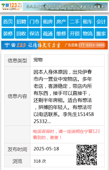 因本人身体原因,出兑伊春市内一营业中宠物店。多年老店,客源稳定,带店内所有东西,接手可以直接干,还剩半年房租。适合有想法,拼搏的年轻人。有想法可以电话联系。李先生15145825332 【电话咨询时,请一定说明在伊春信息网看到的,谢谢!】 |
