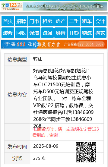 好消息[烟花]好消息[烟花]1.乌马河驾校暑期招生优惠小车C1C21500元培训费,摩托车D500元培训费正规驾校专业团队,一对一练车全程VIP教学2.招聘,教练员,交社保医保报名电话13846609268微信同步王教13846609268 【电话咨询时,请一定说明在伊春信息网看到的,谢谢!】 |