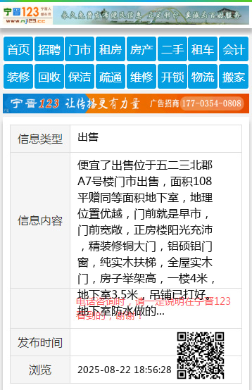 便宜了出售位于五二三北郡A7号楼门市出售,面积108平赠同等面积地下室,地理位置优越,门前就是早市,门前宽敞,正房楼阳光充沛,精装修铜大门,铝硕铝门窗,纯实木扶梯,全屋实木门,房子举架高,一楼4米,地下室3.5米,吊铺已打好。地下室防水做的特别好,三个单间,一个厨房 【电话咨询时,请一定说明在伊春信息网看到的,谢谢!】 |