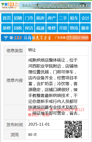 成熟烘焙店整体转让,位于河西职业学院附近,店铺地理位置优越,门前可停车,店内设备齐全,经营项目丰富,含扩奶茶;冷饮等,客源稳定,店铺口碑很好,接手教整套最新烘焙技术,不论你是新手或行内人员都可快速培训最专业技术及配方,保证接手即可营业,省去你加盟及装修费用,机不可失,咨询从速,营业时间非诚勿扰!先生13089624455 【电话咨询时,请一定说明在伊春信息网看到的,谢谢!】 |