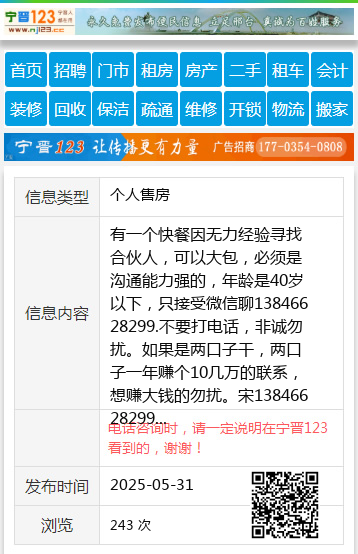 有一个快餐因无力经验寻找合伙人,可以大包,必须是沟通能力强的,年龄是40岁以下,只接受微信聊13846628299.不要打电话,非诚勿扰。如果是两口子干,两口子一年赚个10几万的联系,想赚大钱的勿扰。宋13846628299 【电话咨询时,请一定说明在伊春信息网看到的,谢谢!】 |