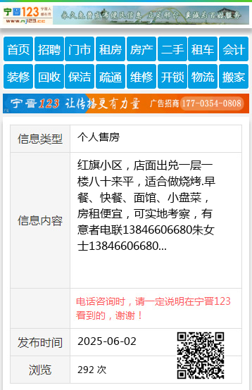 红旗小区,店面出兑一层一楼八十来平,适合做烧烤.早餐、快餐、面馆、小盘菜,房租便宜,可实地考察,有意者电联13846606680朱女士13846606680 【电话咨询时,请一定说明在伊春信息网看到的,谢谢!】 |
