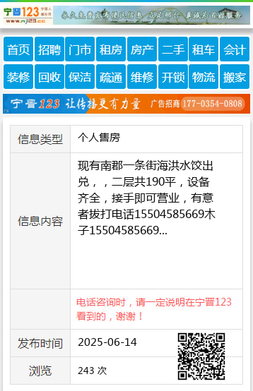 现有南郡一条街海洪水饺出兑,,二层共190平,设备齐全,接手即可营业,有意者拔打电话15504585669木子15504585669 【电话咨询时,请一定说明在伊春信息网看到的,谢谢!】 |