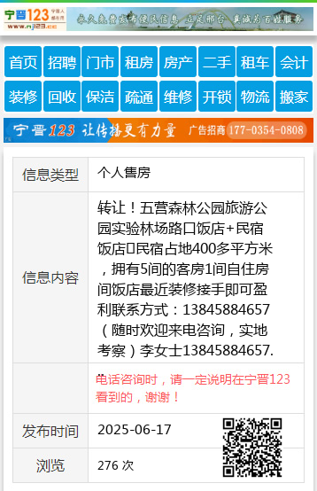 转让!五营森林公园旅游公园实验林场路口饭店+民宿饭店➕民宿占地400多平方米,拥有5间的客房1间自住房间饭店最近装修接手即可盈利联系方式:13845884657(随时欢迎来电咨询,实地考察)李女士13845884657 【电话咨询时,请一定说明在伊春信息网看到的,谢谢!】 |