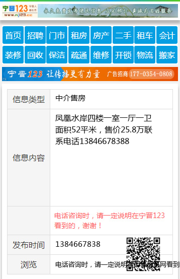 凤凰水岸四楼一室一厅一卫面积52平米,售价25.8万联系电话13846678388