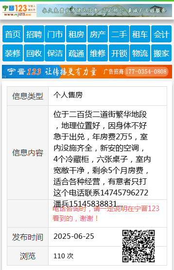 位于二百货二道街繁华地段,地理位置好,因身体不好急于出兑,年房费2万5,室内没施齐全,新安的空调,4个冷藏柜,六张桌子,室内宽敝干净,剩余5个月房费,适合各种经营,有意者只打这个电话联系14745796272潘兵15145838831 【电话咨询时,请一定说明在伊春信息网看到的,谢谢!】 |