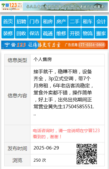 接手就干,稳赚不赔,设备齐全,3p立式空调,带7个月房租,6年老店客流稳定,堂食外卖都不错,操作简单,好上手,出兑出兑期间正常营业黄先生17504585551 【电话咨询时,请一定说明在伊春信息网看到的,谢谢!】 |