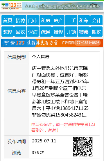 店主着急去外地出兑市医院门对面快餐,位置好,啥都带房租一年五万四到2025年1月20号到期全屋三相电带早餐盒饭炒菜全套设备干啥都够用楼上楼下和地下室每层六十平电话13894171165非诚勿扰梁15804582431 【电话咨询时,请一定说明在伊春信息网看到的,谢谢!】 |