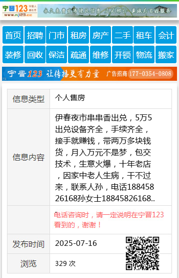 伊春夜市串串香出兑,5万5出兑设备齐全,手续齐全,接手就赚钱,带两万多块钱货,月入万元不是梦,包交技术,生意火爆,十年老店,因家中老人生病,干不过来,联系人孙,电话18845826168孙女士18845826168 【电话咨询时,请一定说明在伊春信息网看到的,谢谢!】 |