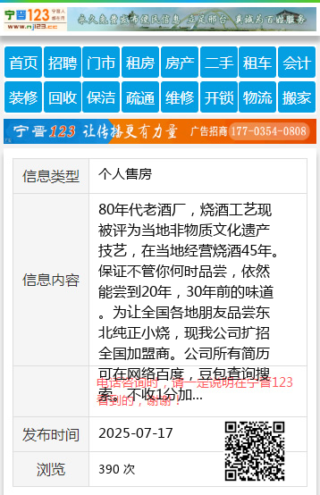 80年代老酒厂,烧酒工艺现被评为当地非物质文化遗产技艺,在当地经营烧酒45年。保证不管你何时品尝,依然能尝到20年,30年前的味道。为让全国各地朋友品尝东北纯正小烧,现我公司扩招全国加盟商。公司所有简历可在网络百度,豆包查询搜索。不收1分加盟费。有意向者可以联系我。19804586661刘先生19804586661