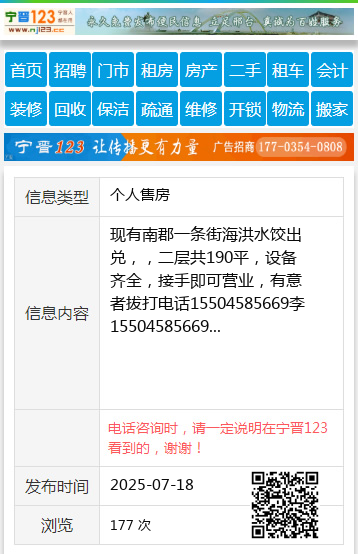 现有南郡一条街海洪水饺出兑,,二层共190平,设备齐全,接手即可营业,有意者拔打电话15504585669李15504585669 【电话咨询时,请一定说明在伊春信息网看到的,谢谢!】 |