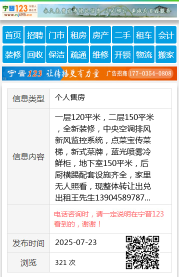 一层120平米,二层150平米,全新装修,中央空调排风新风监控系统,点菜宝传菜梯,新式菜牌,蓝光喷雾冷鲜柜,地下室150平米,后厨横踢配套设施齐全,家里无人照看,现整体转让出兑出租王先生13904589787 【电话咨询时,请一定说明在伊春信息网看到的,谢谢!】 |