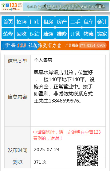 凤凰水岸饭店出兑,位置好,一楼140平地下140平。设施齐全,正常营业中。接手即盈利。非诚勿扰联系方式王先生13846699976 【电话咨询时,请一定说明在伊春信息网看到的,谢谢!】 |