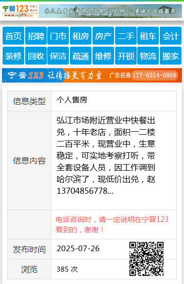 弘江市场附近营业中快餐出兑,十年老店,面积一二楼二百平米,现营业中,生意稳定,可实地考察打听,带全套设备人员,因工作调到哈尔滨了,现低价出兑,赵13704856778 【电话咨询时,请一定说明在伊春信息网看到的,谢谢!】 |