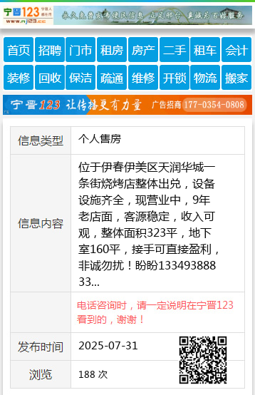 位于伊春伊美区天润华城一条街烧烤店整体出兑,设备设施齐全,现营业中,9年老店面,客源稳定,收入可观,整体面积323平,地下室160平,接手可直接盈利,非诚勿扰!盼盼13349388833 【电话咨询时,请一定说明在伊春信息网看到的,谢谢!】 |