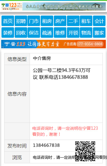 公园一号二楼94.3平63万可议 联系电话13846678388