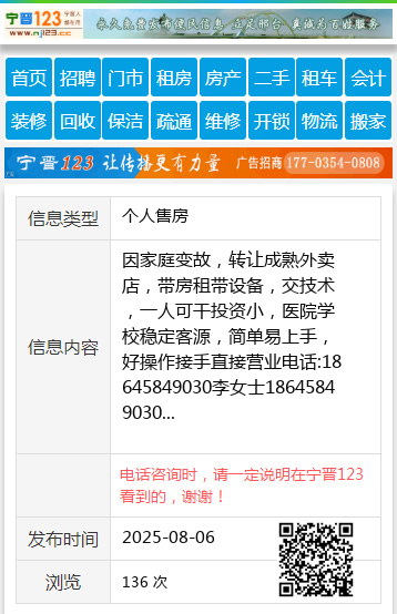 因家庭变故,转让成熟外卖店,带房租带设备,交技术,一人可干投资小,医院学校稳定客源,简单易上手,好操作接手直接营业电话:18645849030李女士18645849030 【电话咨询时,请一定说明在伊春信息网看到的,谢谢!】 |