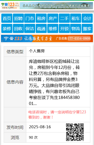 库迪咖啡新区松韵城转让出兑,房租到今年12月份,转让费2万包含剩余房租,物料另算,另有品牌押金费3万元。大品牌自带引流闭眼睛挣钱,有兴趣老板先自己考察在谈丁先生18445838001 【电话咨询时,请一定说明在伊春信息网看到的,谢谢!】 |