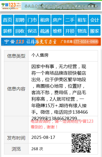 因家中有事,无力经营,现将一个商场品牌连锁快餐店出兑,位于伊美区繁华地段,商圈核心地带,位置好,客流不愁,费用低,产品毛利率高,2人就可经营,一年稳赚15万+.期待有缘人接手。微信,电话同步13846628299宋13846628299 【电话咨询时,请一定说明在伊春信息网看到的,谢谢!】 |