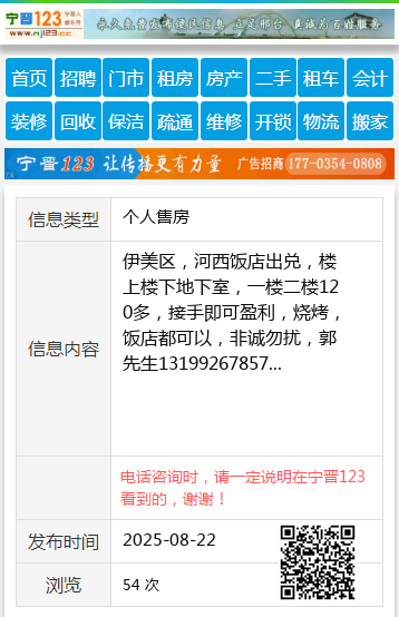 伊美区,河西饭店出兑,楼上楼下地下室,一楼二楼120多,接手即可盈利,烧烤,饭店都可以,非诚勿扰,郭先生13199267857 【电话咨询时,请一定说明在伊春信息网看到的,谢谢!】 |