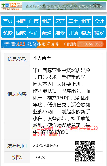 半山国际营业中烧烤店出兑,可带技术,手把手教学,因为本人白天还要上班,工作不能耽误,忍痛出兑,面积一二楼共160平,房租到年底,低价出兑,适合想创业的小两口,刚起步的新手小白,设备都带,接手就能盈利。便宜喽嗖就兑了!先生18745817890 【电话咨询时,请一定说明在伊春信息网看到的,谢谢!】 |