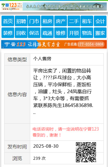 平房出卖了,闲置的物品转让,????乒乓球台,大小高压锅,平冷保鲜柜,蒸饭柜,油罐,灶头,24凤凰自行车,3*3大伞等,有需要抓紧联系陈先生18645836898 【电话咨询时,请一定说明在伊春信息网看到的,谢谢!】 |