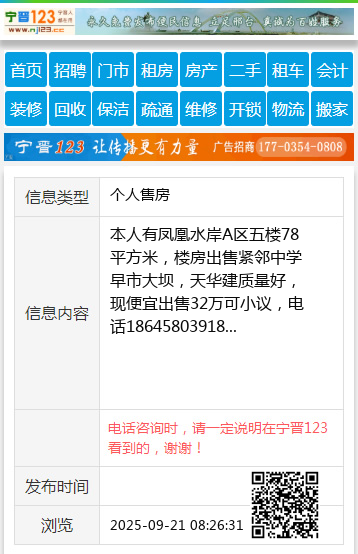 本人有凤凰水岸A区五楼78平方米,楼房出售紧邻中学早市大坝,天华建质量好,现便宜出售32万可小议,电话18645803918 【电话咨询时,请一定说明在伊春信息网看到的,谢谢!】 |