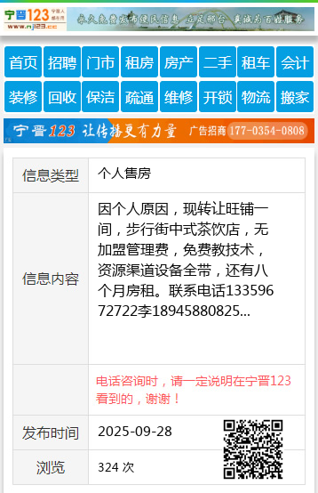 因个人原因,现转让旺铺一间,步行街中式茶饮店,无加盟管理费,免费教技术,资源渠道设备全带,还有八个月房租。联系电话13359672722李18945880825 【电话咨询时,请一定说明在伊春信息网看到的,谢谢!】 |