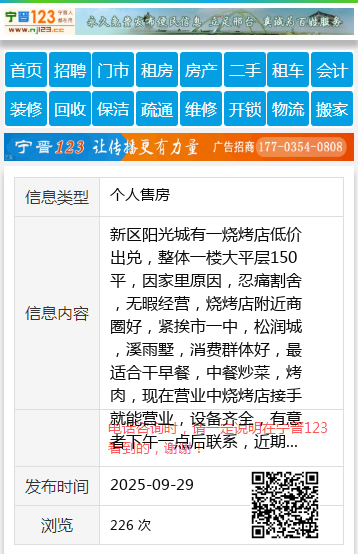 新区阳光城有一烧烤店低价出兑,整体一楼大平层150平,因家里原因,忍痛割舍,无暇经营,烧烤店附近商圈好,紧挨市一中,松润城,溪雨墅,消费群体好,最适合干早餐,中餐炒菜,烤肉,现在营业中烧烤店接手就能营业,设备齐全,有意者下午一点后联系,近期成交优惠,饭口勿扰,联系电话19845009099陈19845009099 【电话咨询时,请一定说明在伊春信息网看到的,谢谢!】 |