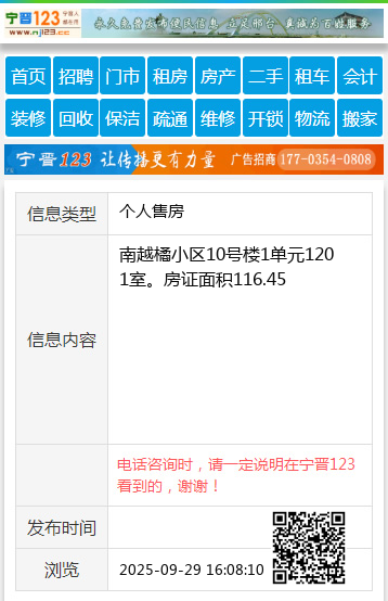 南越橘小区10号楼1单元1201室。房证面积116.45