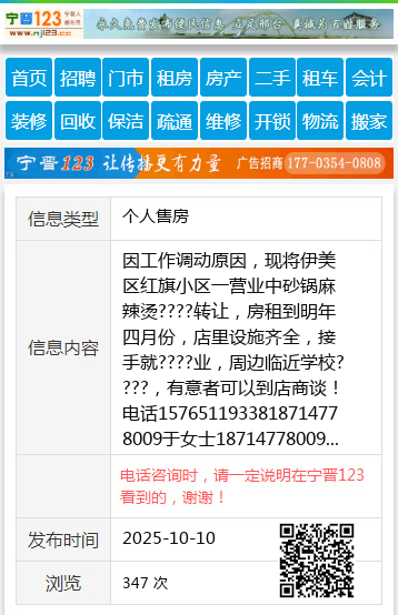 因工作调动原因,现将伊美区红旗小区一营业中砂锅麻辣烫????转让,房租到明年四月份,店里设施齐全,接手就????业,周边临近学校????,有意者可以到店商谈!电话1576511933818714778009于女士18714778009 【电话咨询时,请一定说明在伊春信息网看到的,谢谢!】 |