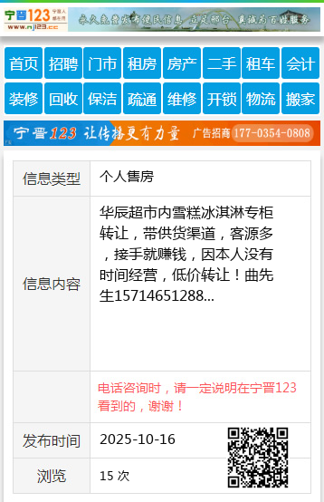 华辰超市内雪糕冰淇淋专柜转让,带供货渠道,客源多,接手就赚钱,因本人没有时间经营,低价转让!曲先生15714651288 【电话咨询时,请一定说明在伊春信息网看到的,谢谢!】 |
