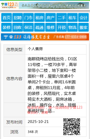南郡烧烤店给钱出兑,D1区11号楼,一楼70多平,高举架带小二楼,地下室和一楼面积一样,屋里六张桌4个单间2个卡台,单间1.6米圆桌,房租到11月底,4年前的装修,风格现代,实木桌椅实木大酒柜,厨房冰箱,冰柜,操作台,水池,排烟系统好用,适合干烧烤或者饭店,电话:13089623776烧烤13089623776 【电话咨询时,请一定说明在伊春信息网看到的,谢谢!】 |