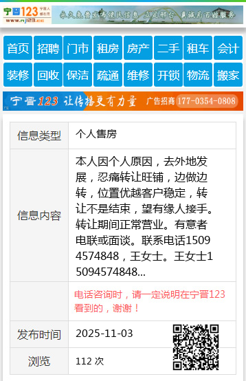 本人因个人原因,去外地发展,忍痛转让旺铺,边做边转,位置优越客户稳定,转让不是结束,望有缘人接手。转让期间正常营业。有意者电联或面谈。联系电话15094574848,王女士。王女士15094574848 【电话咨询时,请一定说明在伊春信息网看到的,谢谢!】 |