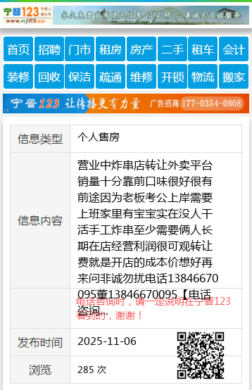 营业中炸串店转让外卖平台销量十分靠前口味很好很有前途因为老板考公上岸需要上班家里有宝宝实在没人干活手工炸串至少需要俩人长期在店经营利润很可观转让费就是开店的成本价想好再来问非诚勿扰电话13846670095董13846670095 【电话咨询时,请一定说明在伊春信息网看到的,谢谢!】 |