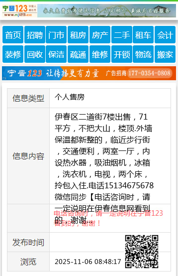 伊春区二道街7楼出售,71平方,不把大山,楼顶.外墙保温都新整的,临近步行街,交通便利,两室一厅,内设热水器,吸油烟机,冰箱,洗衣机,电视,两个床,拎包入住.电话15134675678微信同步 【电话咨询时,请一定说明在伊春信息网看到的,谢谢!】 |