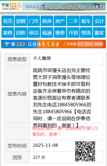 跳跳市场馒头店出兑主要经营大饼子油条馒头等地理位置好包教技术接手即可盈利设备齐全挨着早市有稳定的客源价格面议有意者请联系刘先生电话18845805966刘先生18845805966 【电话咨询时,请一定说明在伊春信息网看到的,谢谢!】 |