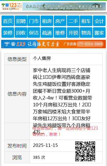 家中老人生病现将三个店铺转让1⃣️伊春河西转盘道梁先生鸡腿饭位置好客源稳定团餐不断日营业额3000+月收入2-4w!可看营业数据带10个月房租32万出兑!2⃣️万象城四楼禾焰大食堂带半年房租12万出兑!3⃣️友好梁先生鸡腿饭带九个月房租4万出兑!联系电话:1370485990018804588675姜先生18804588675 【电话咨询时,请一定说明在伊春信息网看到的,谢谢!】 |