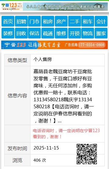 嘉荫县老魏豆腐坊干豆腐批发零售,干豆腐口感好有豆腐味,无任何添加剂,多购优惠假一赔十,联系电话:13134580218魏庆宇13134580218 【电话咨询时,请一定说明在伊春信息网看到的,谢谢!】 |