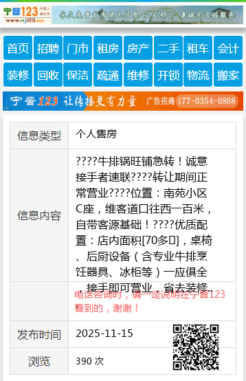 ????牛排锅旺铺急转!诚意接手者速联????转让期间正常营业????位置:南苑小区C座,维客道口往西一百米,自带客源基础!????优质配置:店内面积[70多㎡],桌椅、后厨设备(含专业牛排烹饪器具、冰柜等)一应俱全,接手即可营业,省去装修采购成本!????经营无忧:成熟运营模式,牛排锅配方独特,回头客众多,经营数据亮眼!⏰转让原因:因个人发展规划调整,忍痛割爱,低价急转!⚠️特别说明:仅接待诚意转让客户,打听价、闲聊者勿扰!具体转让费用面议,欢迎实地考察!????联系电话:18845851209微信同号错过再无!抓住商机,开启你的财富之路!罗女士18845851209 【电话咨询时,请一定说明在伊春信息网看到的,谢谢!】 |