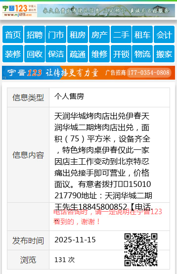 天润华城烤肉店出兑伊春天润华城二期烤肉店出兑,面积(75)平方米,设备齐全,特色烤肉桌伊春仅此一家因店主工作变动到北京特忍痛出兑接手即可营业,价格面议。有意者拨打☎️15010217790地址:天润华城二期王先生18845800852 【电话咨询时,请一定说明在伊春信息网看到的,谢谢!】 |