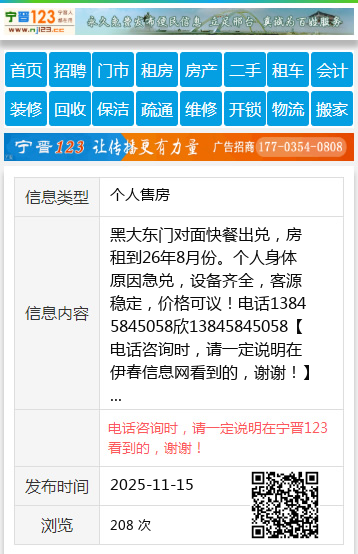 黑大东门对面快餐出兑,房租到26年8月份。个人身体原因急兑,设备齐全,客源稳定,价格可议!电话13845845058欣13845845058 【电话咨询时,请一定说明在伊春信息网看到的,谢谢!】 |