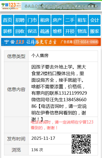 因孩子要去外地上学。黑大食堂2楼档口整体出兑,里面设施齐全,接手就能干。啥都不需要添置,价格低,有意向的联系13121199929微信同号汪先生13845866086 【电话咨询时,请一定说明在伊春信息网看到的,谢谢!】 |