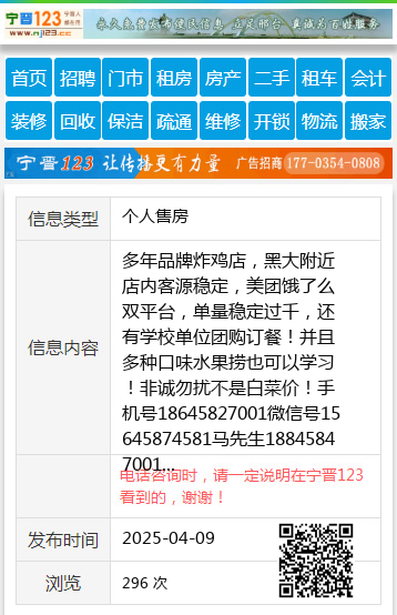 多年品牌炸鸡店,黑大附近店内客源稳定,美团饿了么双平台,单量稳定过千,还有学校单位团购订餐!并且多种口味水果捞也可以学习!非诚勿扰不是白菜价!手机号18645827001微信号15645874581马先生18845847001 【电话咨询时,请一定说明在伊春信息网看到的,谢谢!】 |