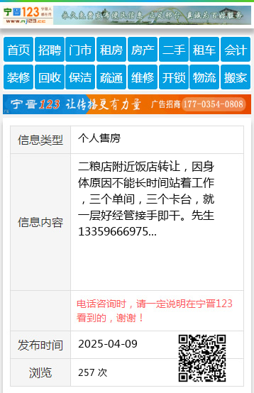 二粮店附近饭店转让,因身体原因不能长时间站着工作,三个单间,三个卡台,就一层好经管接手即干。先生13359666975 【电话咨询时,请一定说明在伊春信息网看到的,谢谢!】 |
