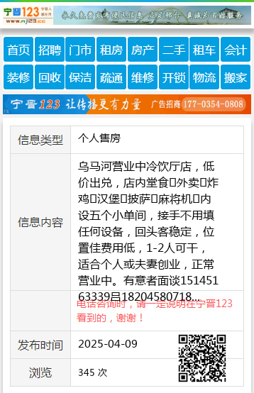 乌马河营业中冷饮厅店,低价出兑,店内堂食➕外卖➕炸鸡➕汉堡➕披萨➕麻将机➕内设五个小单间,接手不用填任何设备,回头客稳定,位置佳费用低,1-2人可干,适合个人或夫妻创业,正常营业中。有意者面谈15145163339吕18204580718 【电话咨询时,请一定说明在伊春信息网看到的,谢谢!】 |