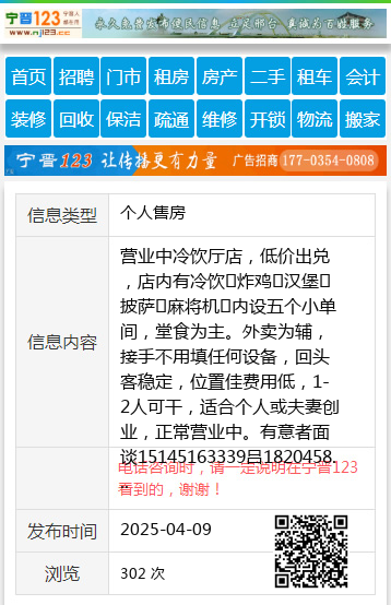 营业中冷饮厅店,低价出兑,店内有冷饮➕炸鸡➕汉堡➕披萨➕麻将机➕内设五个小单间,堂食为主。外卖为辅,接手不用填任何设备,回头客稳定,位置佳费用低,1-2人可干,适合个人或夫妻创业,正常营业中。有意者面谈15145163339吕18204580718 【电话咨询时,请一定说明在伊春信息网看到的,谢谢!】 |