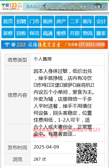 因本人身体过敏,低价出兑,接手就挣钱,店内有冷饮➕炸鸡➕汉堡➕披萨➕麻将机➕内设五个小单间,堂食为主。外卖为辅,店里微信一千多人平时送餐,接手不用填任何设备,回头客稳定,位置佳费用低,1-2人可干,适合个人或夫妻创业,正常营业中。有意者面谈15145163339吕18204580718 【电话咨询时,请一定说明在伊春信息网看到的,谢谢!】 |