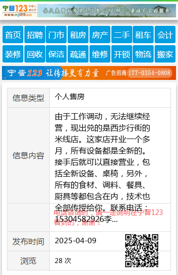 由于工作调动,无法继续经营,现出兑的是西步行街的米线店。这家店开业一个多月,所有设备都是全新的。接手后就可以直接营业,包括全新设备、桌椅,另外,所有的食材、调料、餐具、厨具等都包含在内,技术也全部传授给你。联系电话:15304582926李18645810005 【电话咨询时,请一定说明在伊春信息网看到的,谢谢!】 |