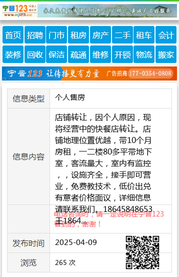 店铺转让,因个人原因,现将经营中的快餐店转让。店铺地理位置优越,带10个月房租,一二楼80多平带地下室,客流量大,室内有监控,,设施齐全,接手即可营业,免费教技术,低价出兑有意者价格面议,详细信息请联系我们。18645848653王18645848653 【电话咨询时,请一定说明在伊春信息网看到的,谢谢!】 |